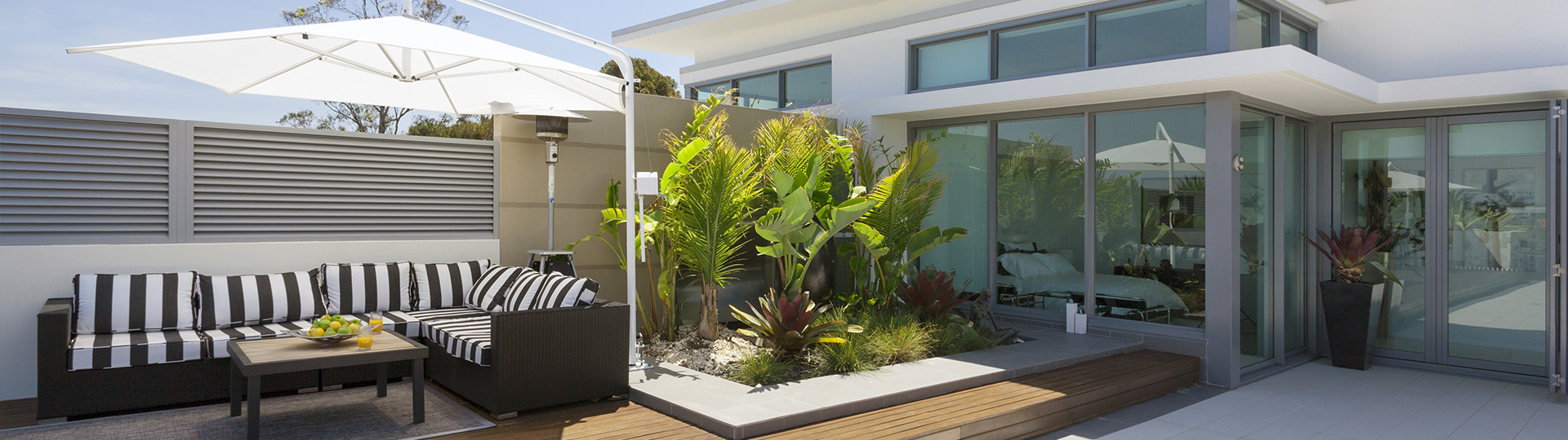 Terrassenbau Gestaltung mit Belägen wie Betonplatten, Kies oder Feinsteinzeug